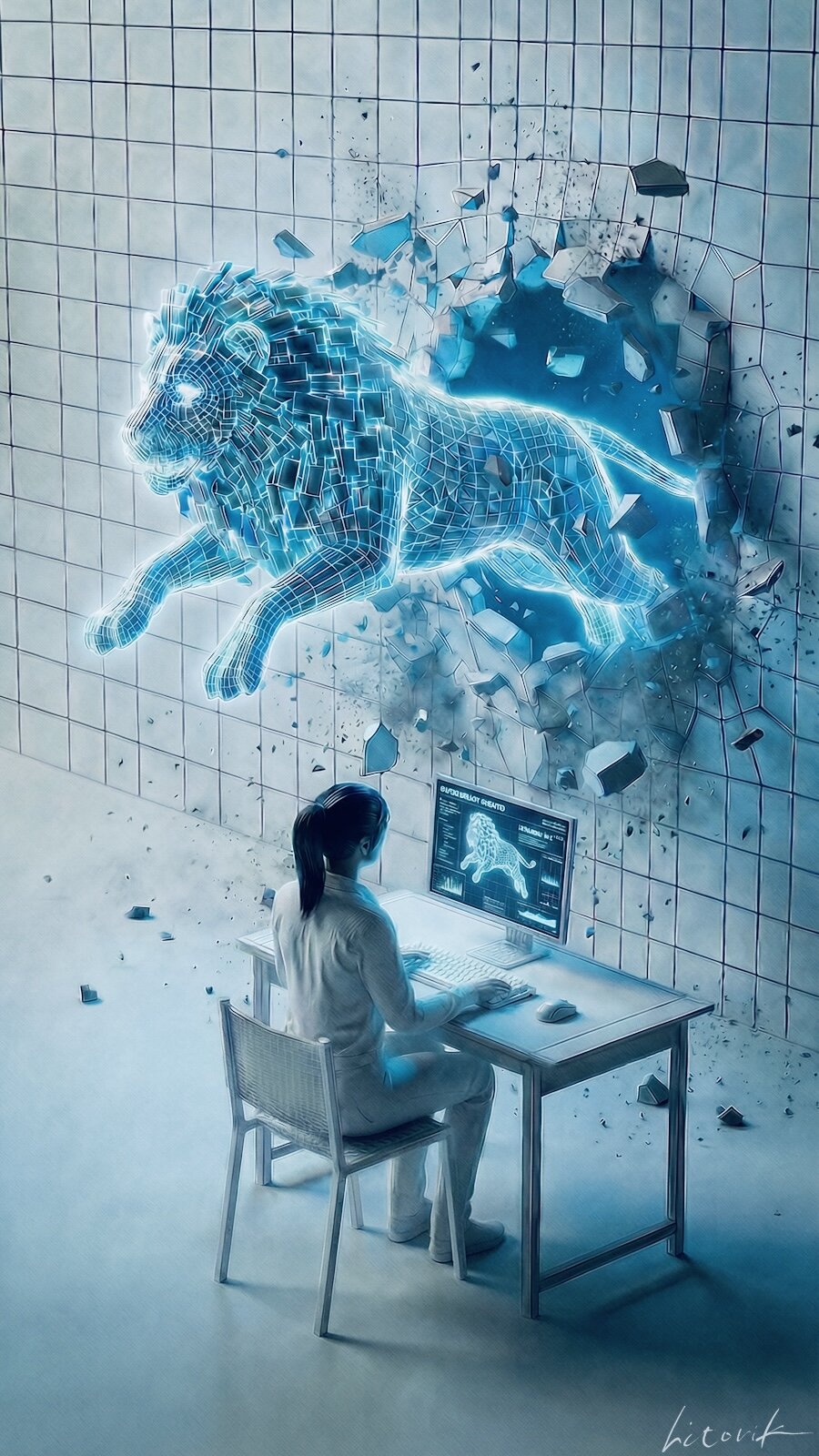 コードで作られたはずの獅子が現実へ跳び出す。