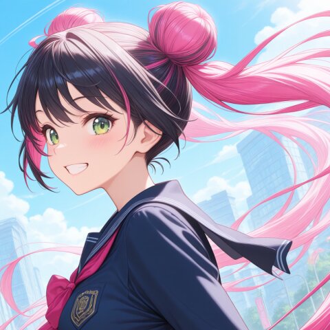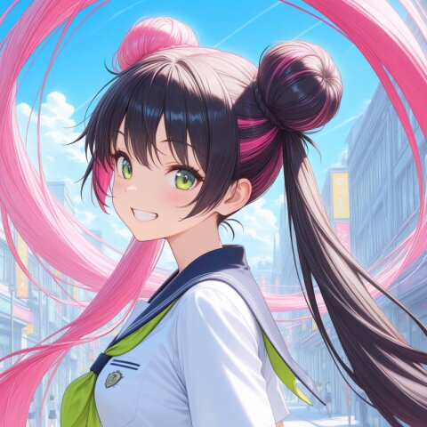 (absurdly long pink hair),(high Twintail),green eyes,(flat chest),smile,(Sparkling Glitter), (garter belt),(garter straps:1.3),magical girl costume,(huge magical staff), light particle,crackling energy,(huge magic circle), looking at viewer, dynamic angle,dynamic pose,cowboy shot,wind, dynamic angle,masterpiece,best quality,very aesthetic, <lora:StS-Illustrious-Detail-Slider-v1.0:2.> <lora:sdxl-hairdetailer_02:2>