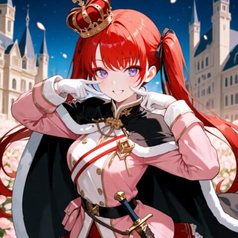 A 20-year-old tall lop rabbit girl with soft brown fur stands proudly in a lavish palace courtyard at sunrise. She has distinctive lop rabbit ears that fold gracefully downward, a fluffy rabbit tail, and light-green long hair styled in a well-groomed manner with strands between her eyes. Her delicate face features narrow light-green eyes, light-green eyebrows, and a cheerful :3 expression with a cute pose. She wears a (Light Green luxurious Prince costume:1.6) with long sleeves, adorned with a (luxurious White Cape:1.3) that billows elegantly behind her. The outfit includes a (luxurious Black mini skirt:1.4), (luxurious Black thighhighs:1.3), and (luxurious Brown Gloves:1.3). A (dagger on waist:1.3) and (luxurious crown on head:1.4) complete her royal warrior aesthetic. The Baroque architecture of the palace surrounds her, with romantic academia elements visible in the ornate columns and arches. Outside, vibrant flowers bloom as soft sunlight filters through, creating a hazy atmosphere with lens flare effects. The scene has a classic academia feel with its soft lighting and detailed textures - from her fluffy fur to the intricate embroidery on her costume. The image is rendered in insanely detailed 16k quality, capturing every strand of hair and fold of fabric in this masterpiece composition.