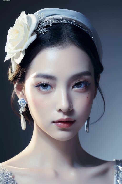 close-up,portrait,Line art,splatter,minimalist elegance,beautiful blue enchantress rose fairy,Tang Dynasty royal face ancient style beauty,high-definition fashion photography,high-end,ambiguous atmosphere,a woman with blue flowers on her face,in the style of anime art,luminous and dreamlike scenes,yanjun cheng,made of crystals,light white and silver,john pitre,cute and dreamy,in the style of chinapunk,romantic scenery,animated gifs,photo-realistic hyperbole,dark white and dark beige,heistcore,strip painting,Bright background,detailed depiction,Delicate face and costume details,lifelike appearance HD 16K,cinematic lighting,chiaroscuro,Arbitrary view,Medium Shot,hyperrealism,Hollywoodtyle,photography,HD Details,Detail Expression,Rich Details,