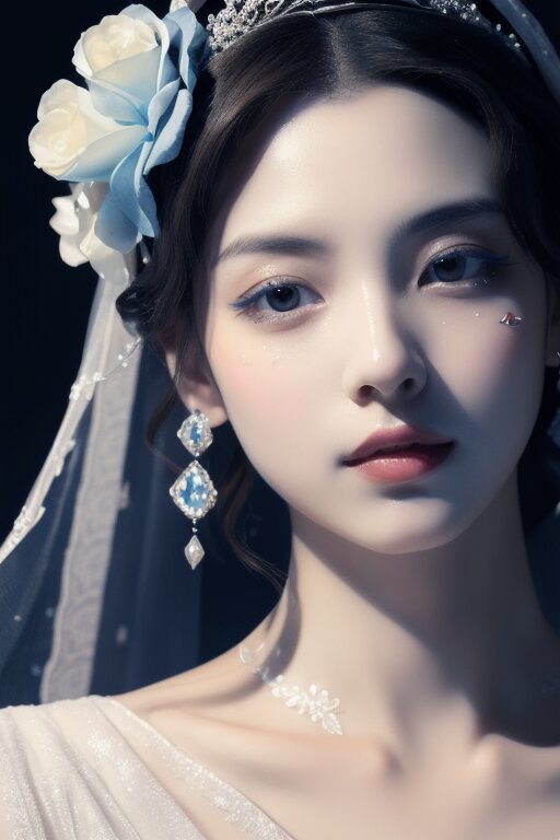 close-up,portrait,Line art,splatter,minimalist elegance,beautiful blue enchantress rose fairy,Tang Dynasty royal face ancient style beauty,high-definition fashion photography,high-end,ambiguous atmosphere,a woman with blue flowers on her face,in the style of anime art,luminous and dreamlike scenes,yanjun cheng,made of crystals,light white and silver,john pitre,cute and dreamy,in the style of chinapunk,romantic scenery,animated gifs,photo-realistic hyperbole,dark white and dark beige,heistcore,strip painting,Bright background,detailed depiction,Delicate face and costume details,lifelike appearance HD 16K,cinematic lighting,chiaroscuro,Arbitrary view,Medium Shot,hyperrealism,Hollywoodtyle,photography,HD Details,Detail Expression,Rich Details,