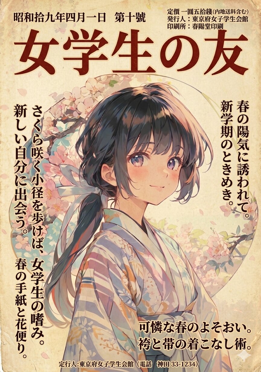 女学生の友 よしだりお 2026/3/15使用したAI Gemini/Nano Banana 年齢制限 全年齢 いいね5 シェア #花のある景色 #女の子 #少女 #レトロ #黒髪 #ロングヘア #ポニーテール #着物 プロンプト なし コメント 送信 よしだりお 2023年10月より活動開始 214投稿30フォロー52フォロワー 2023年からAIでお絵描きしています。主にPixAi使用。女の子の画像中心。 フォローする 他の作品 全てを見る たんぽぽの野に眠る姉弟 ホワイトデーの贈りもの 竹とんぼを飛ばす 紙飛行機 ひな祭り 梅林で イラストレーターの誘惑 ボトルメール 桜便り バイオリン弾き バレンタインのその後 バレンタインの一日 恋に落ちた瞬間 温泉 りんご 鬼の娘 イチゴ少女 子犬と一緒 もっと見る