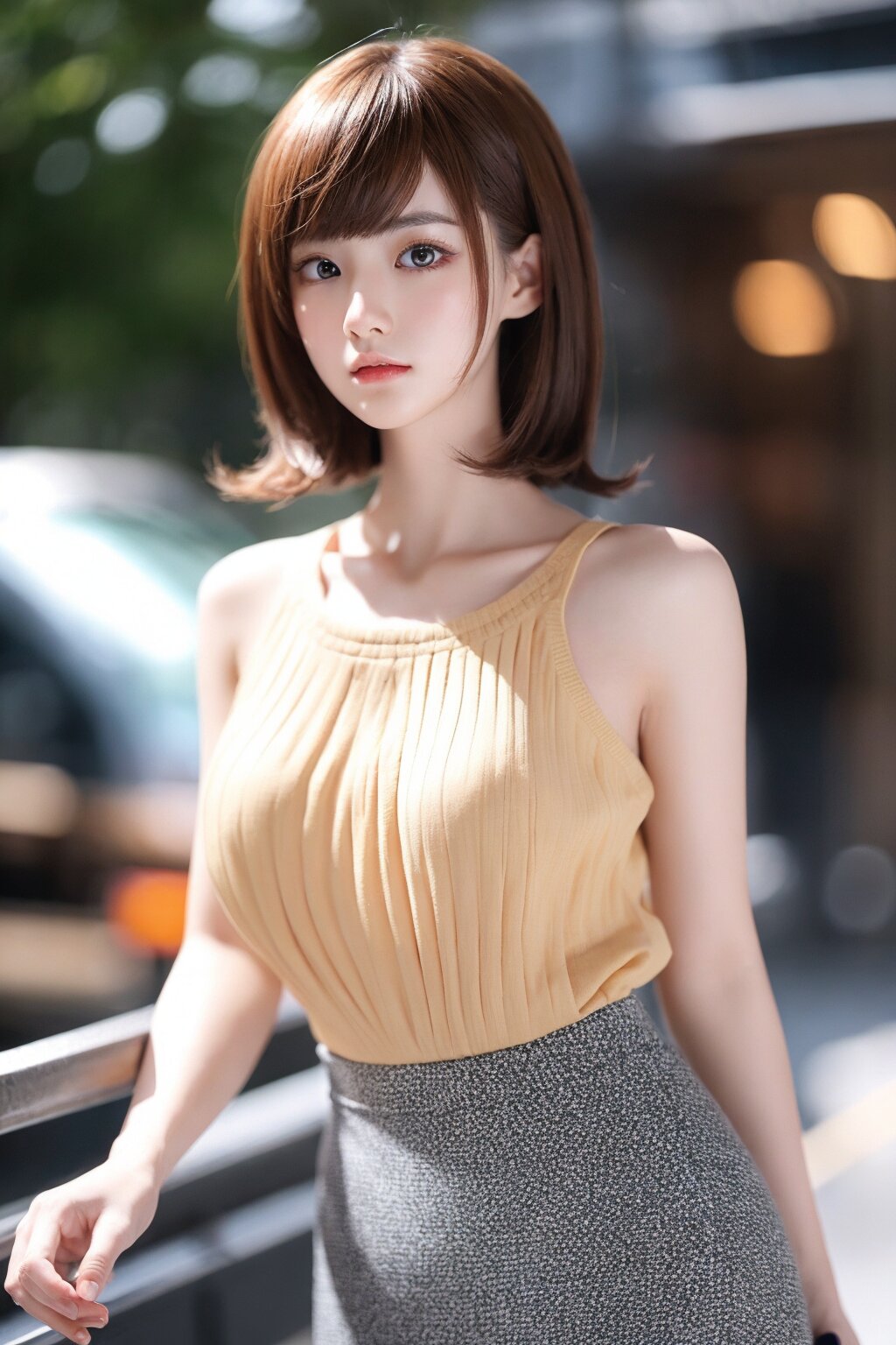 masterpiece, RAW photo, hyper detailed, 16K, extremely detailed CG, Japanese woman, 23yo, ((solo)), cute, pretty, hyper detailed eye, hyper detailed face, medium hair, bangs, extremely detailed, thin, tall, perfect anatomy, good proportion, extremely detailed body, perfect proportion, blouse,short skirt, extremely detailed blouse and skirt, hyper detailed background,