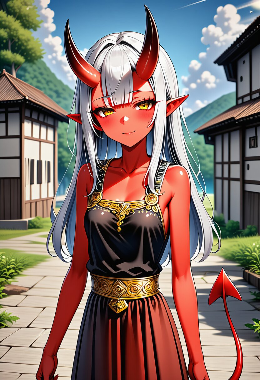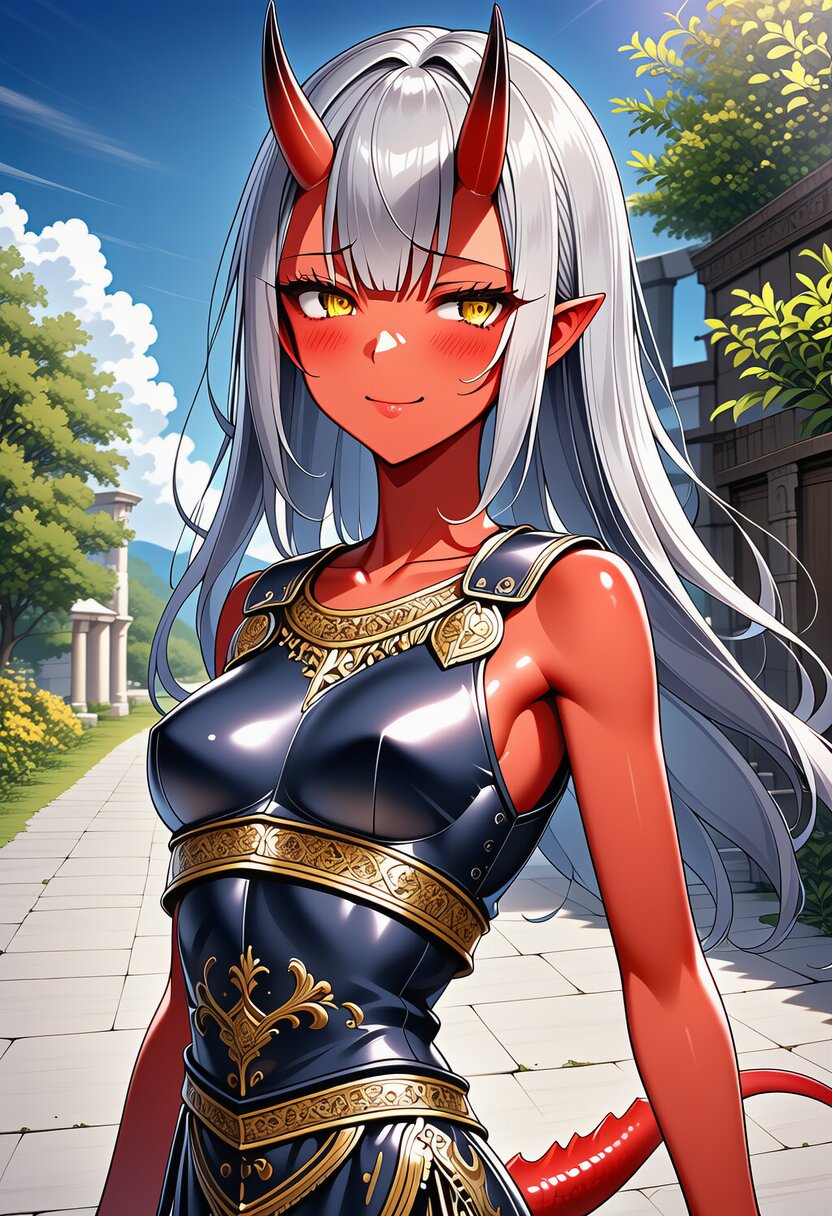 主女島出身の魔人という種族の女。肌は赤く、鬼の様な角を持ち獣人や龍人と違った長い尻尾を持つ。こちらの世界の悪魔や鬼と似たような特徴を持つ種族である。魔人という名の通り驚異的な魔力を誇り、こちらの世界の主女島の人間に近い実力を有している。