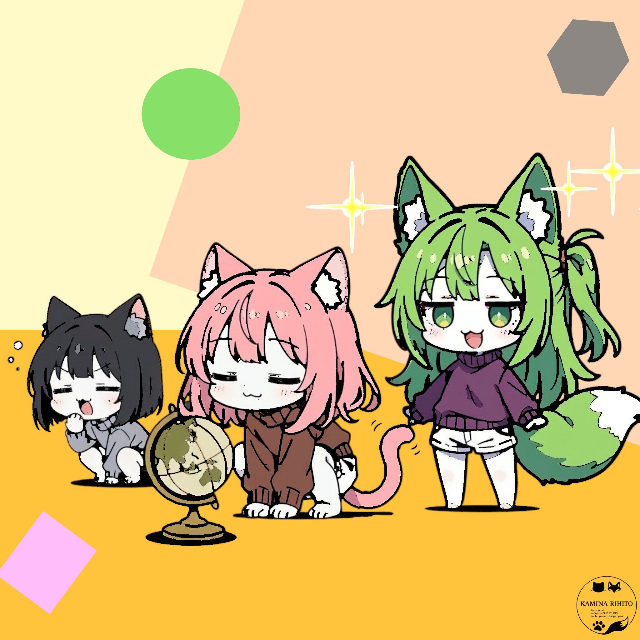 桃猫ちゃん カミナリヒト 2026/3/20使用したAI その他 年齢制限 全年齢 いいね5 シェア 緑狐ちゃん「わぁ地球儀♪( ⸝⸝⸝´꒳`⸝⸝⸝)」桃猫ちゃん「一緒に見るですよ!✨(๑′ᴗ‵๑)」黒猫ちゃん「ふぁぁ(。ρω-。)」※新ロゴデザインにしました✨金曜日の桃猫 プロンプト なし コメント 送信 カミナリヒト 2025年1月より活動開始 636投稿58フォロー65フォロワー 京子ちゃん「うちのマスター、AIイラストクリエイターやねん。よろしぅおたの申します~。」 youtube始めました。よかったら覗いてみてください。 フォローする 他の作品 全てを見る 青猫ちゃんと金猫ちゃん 「ほんわかジャガイモ家庭栽培」 黒猫ちゃん 紫猫ちゃん 青猫ちゃん 赤狐ちゃん 白狐さん 「クセ強クッキング どら焼き」 桃猫ちゃん 紫猫ちゃん 青猫ちゃん 赤狐ちゃん 白狐さん 狐耳ちゃんと猫耳ちゃん 「クセ強ヤキュウ」 黒猫ちゃん 桃猫ちゃん 紫猫ちゃん 赤狐ちゃん 白狐さん もっと見る