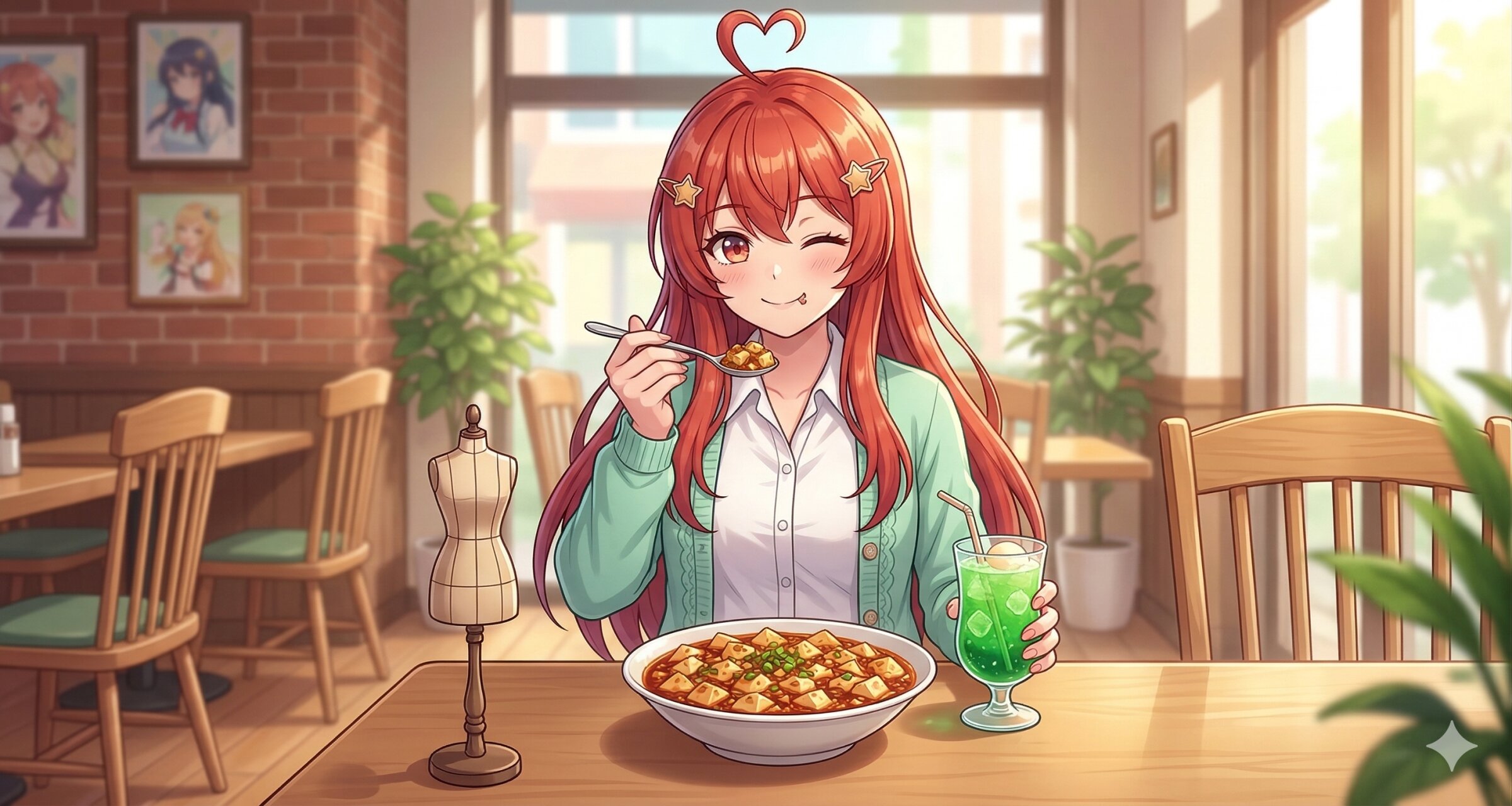 ふふふ、明るいカフェでマネキンと並んでみました。……あの、わたし以外を見たら嫌です。ずっとそばにいて?