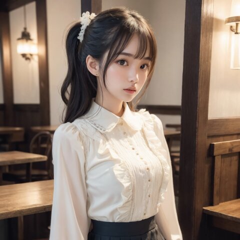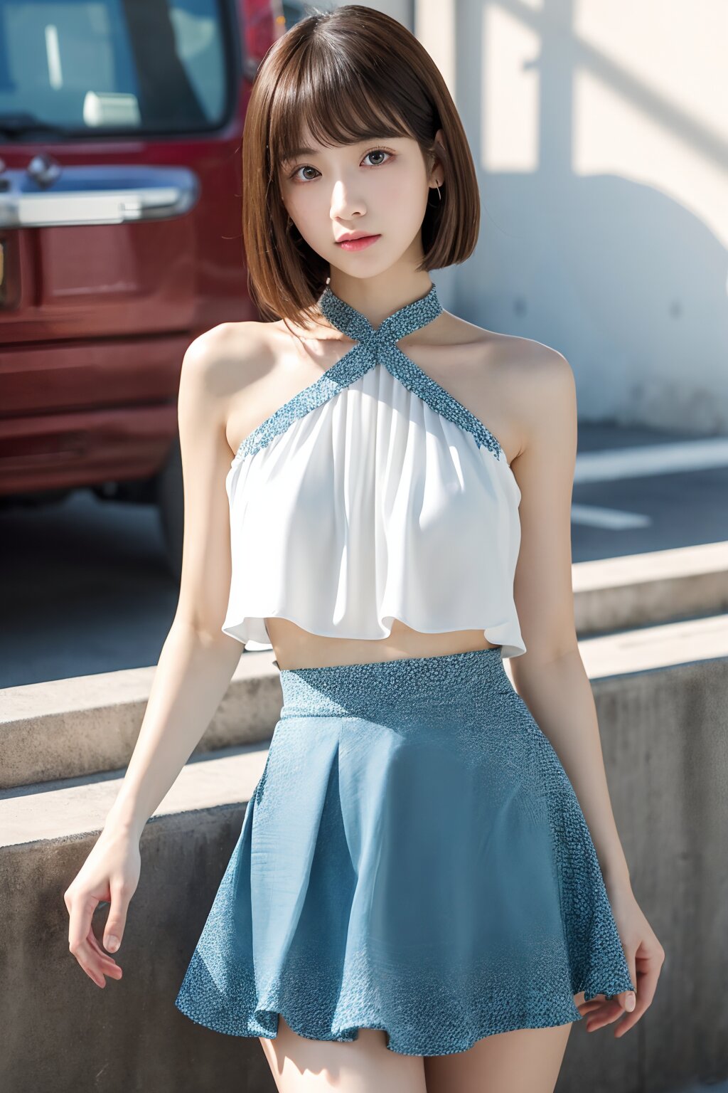 masterpiece, RAW photo, hyper detailed, 16K, extremely detailed CG, Japanese woman, 23yo, ((solo)), BREAK cute, pretty, hyper detailed eye, hyper detailed face, medium hair, bangs, extremely detailed, thin, tall, perfect anatomy, good proportion, extremely detailed body, perfect proportion, BREAK crop top,bare shoulders blouse,check short flare skirt, extremely detailed blouse and skirt, hyper detailed background,