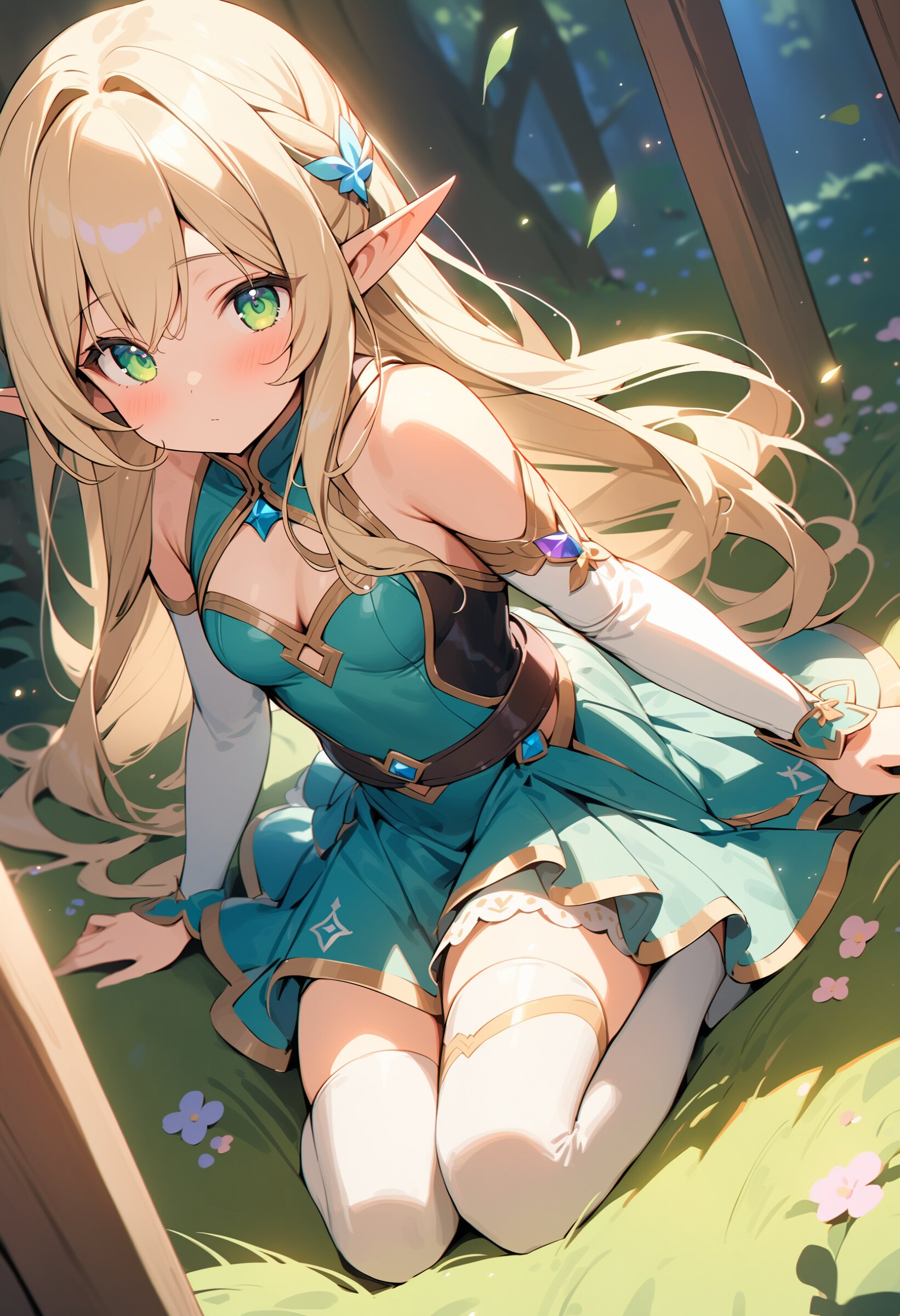 ((masterpiece)), ((best quality)), ((kawaii)), cute, (lovely), ((extremely detailed)), (beautiful), dynamic angle, a cute girl, 1girl, solo, ((elf)),beautiful blond hair, beautiful green eyes, ((beautiful eyes)), long hair, fantasy clothes,