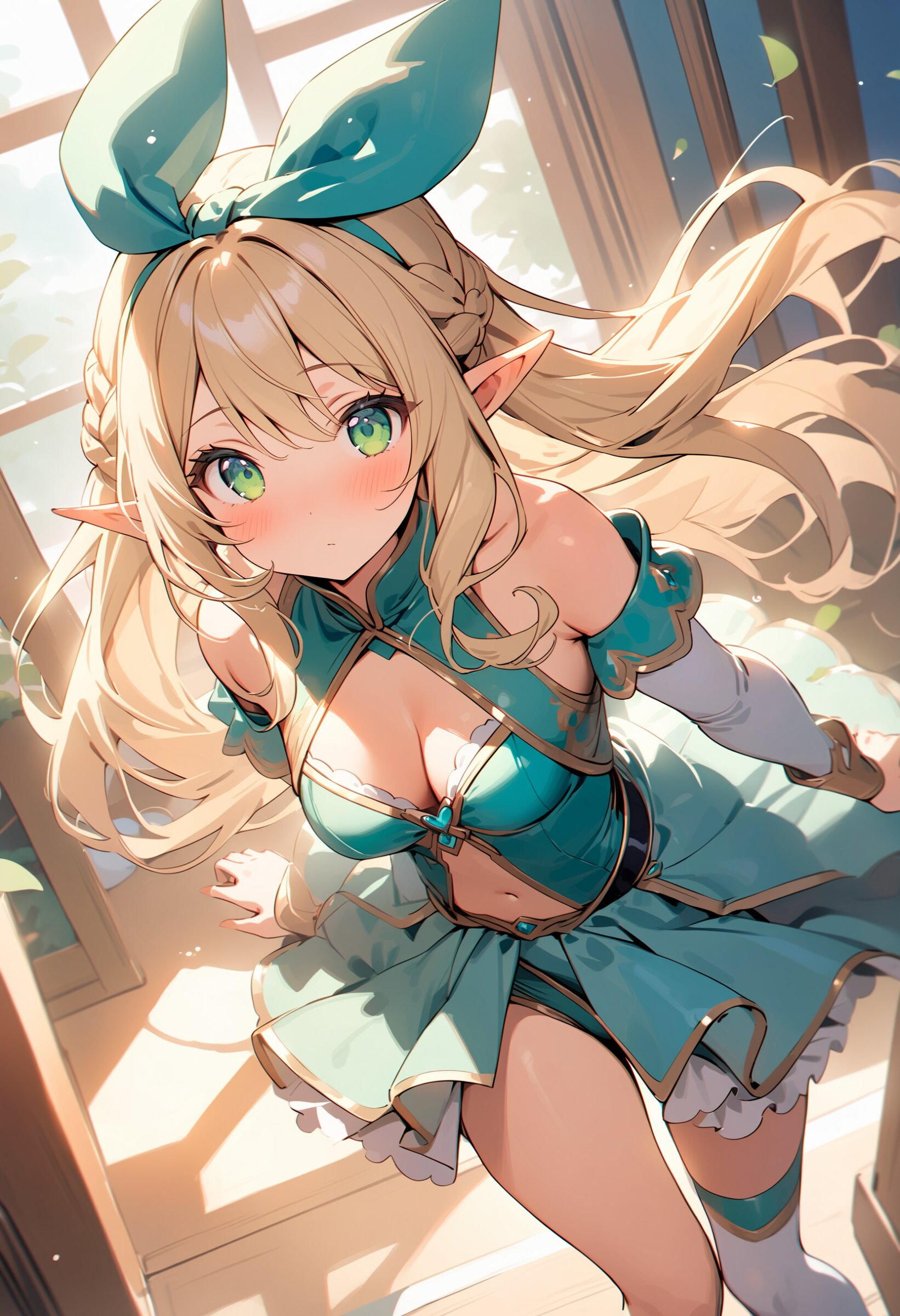 ((masterpiece)), ((best quality)), ((kawaii)), cute, (lovely), ((extremely detailed)), (beautiful), dynamic angle, a cute girl, 1girl, solo, ((elf)),beautiful blond hair, beautiful green eyes, ((beautiful eyes)), long hair, fantasy clothes,