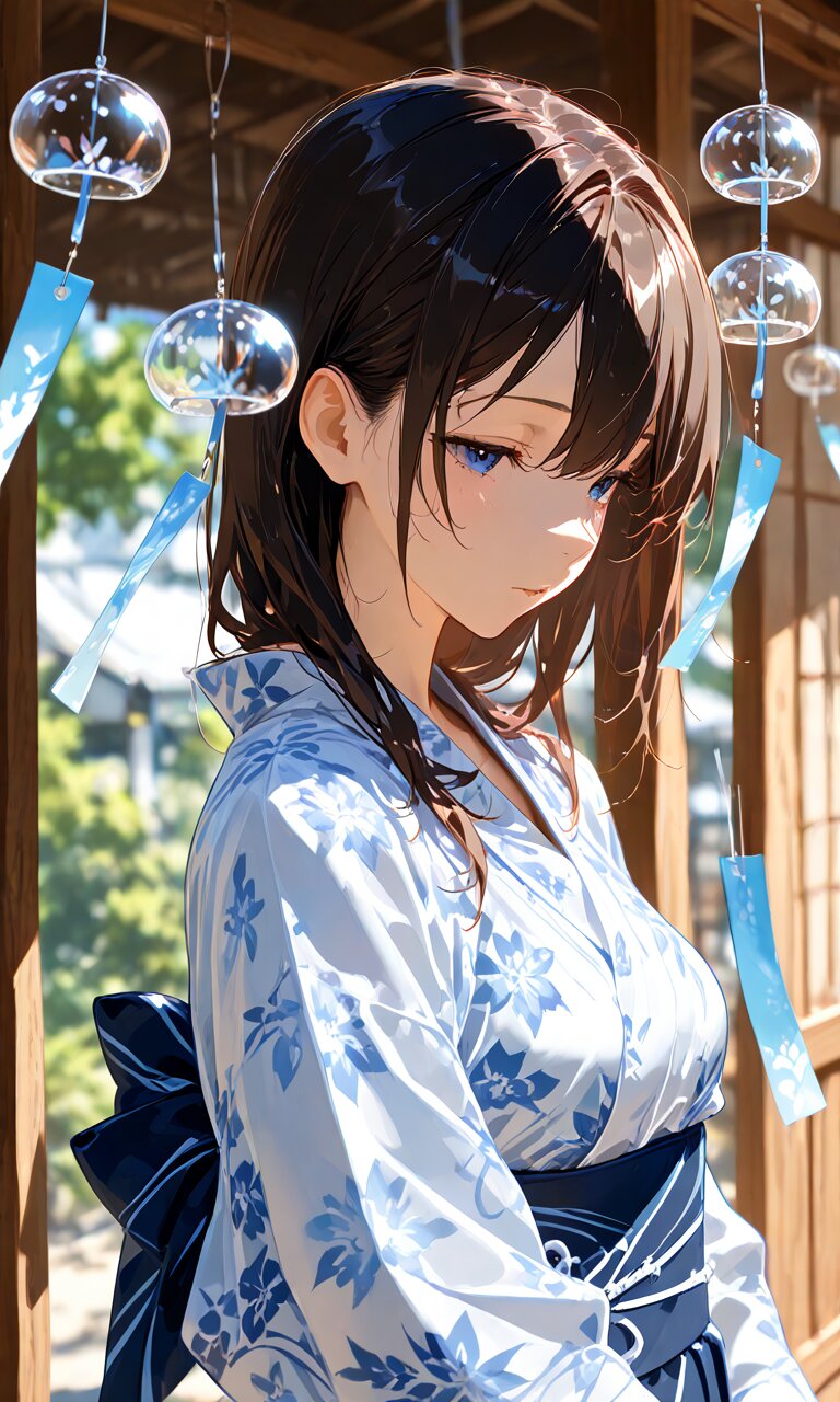 (best quality),(masterpiece),(ultra detailed),1 lady, japanese clothes, ,wind chime,