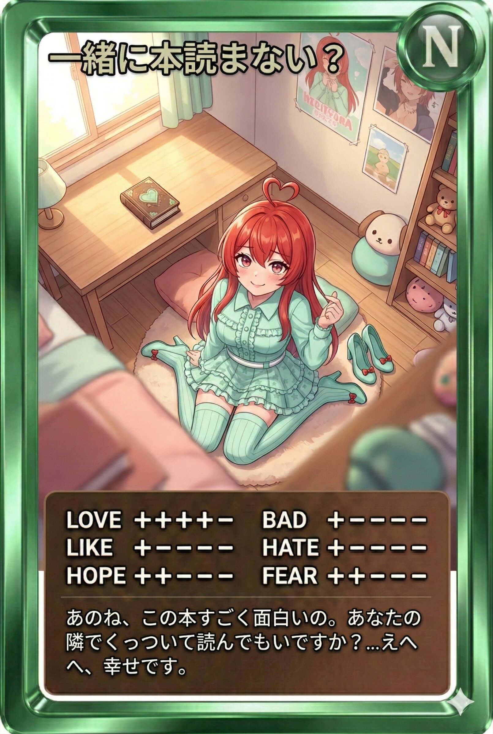 あのね、この本すごく面白いの。あなたの隣でくっついて読んでもいいですか?…えへへ、幸せです。