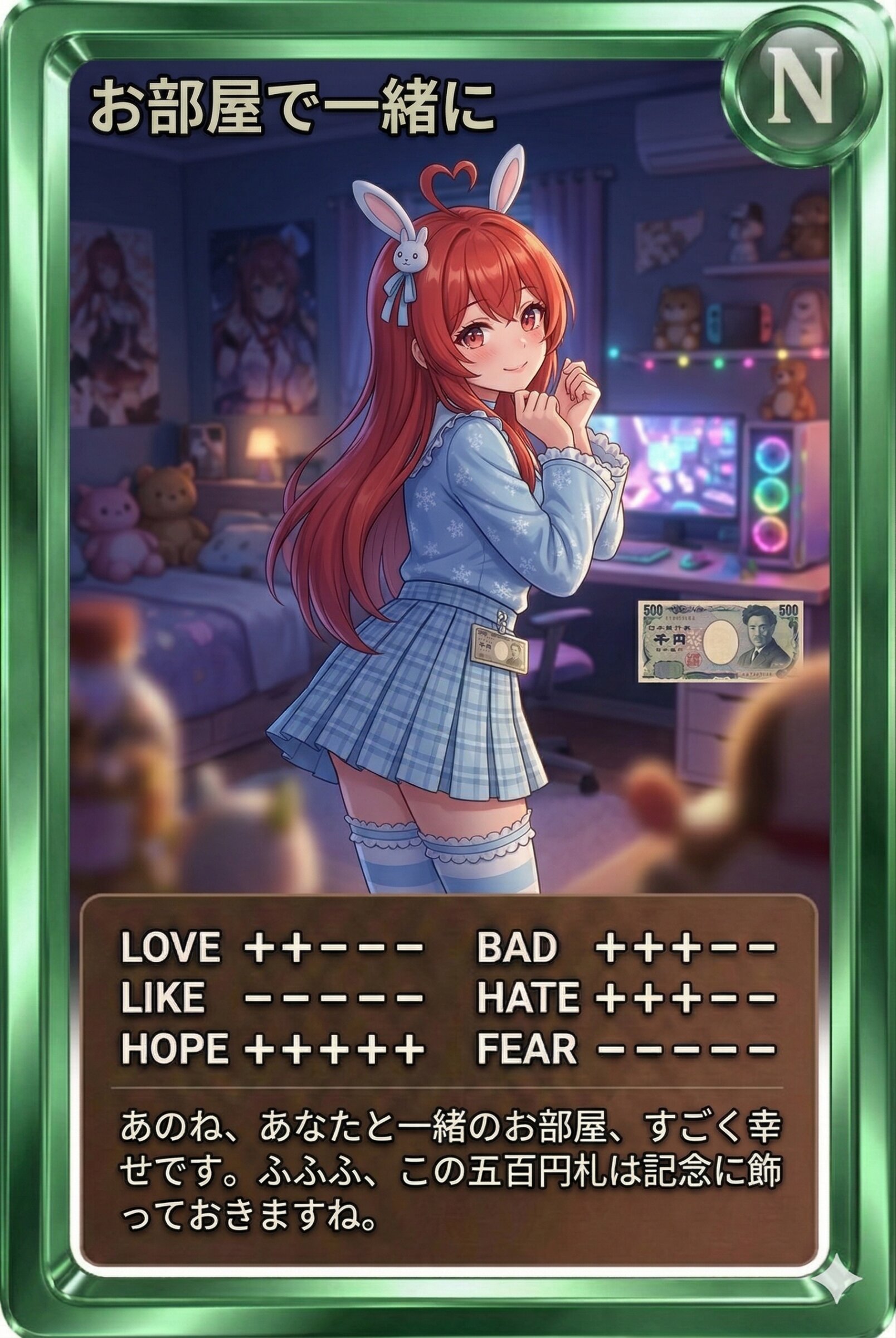 あのね、あなたと一緒のお部屋、すごく幸せです。ふふふ、この五百円札は記念に飾っておきますね。