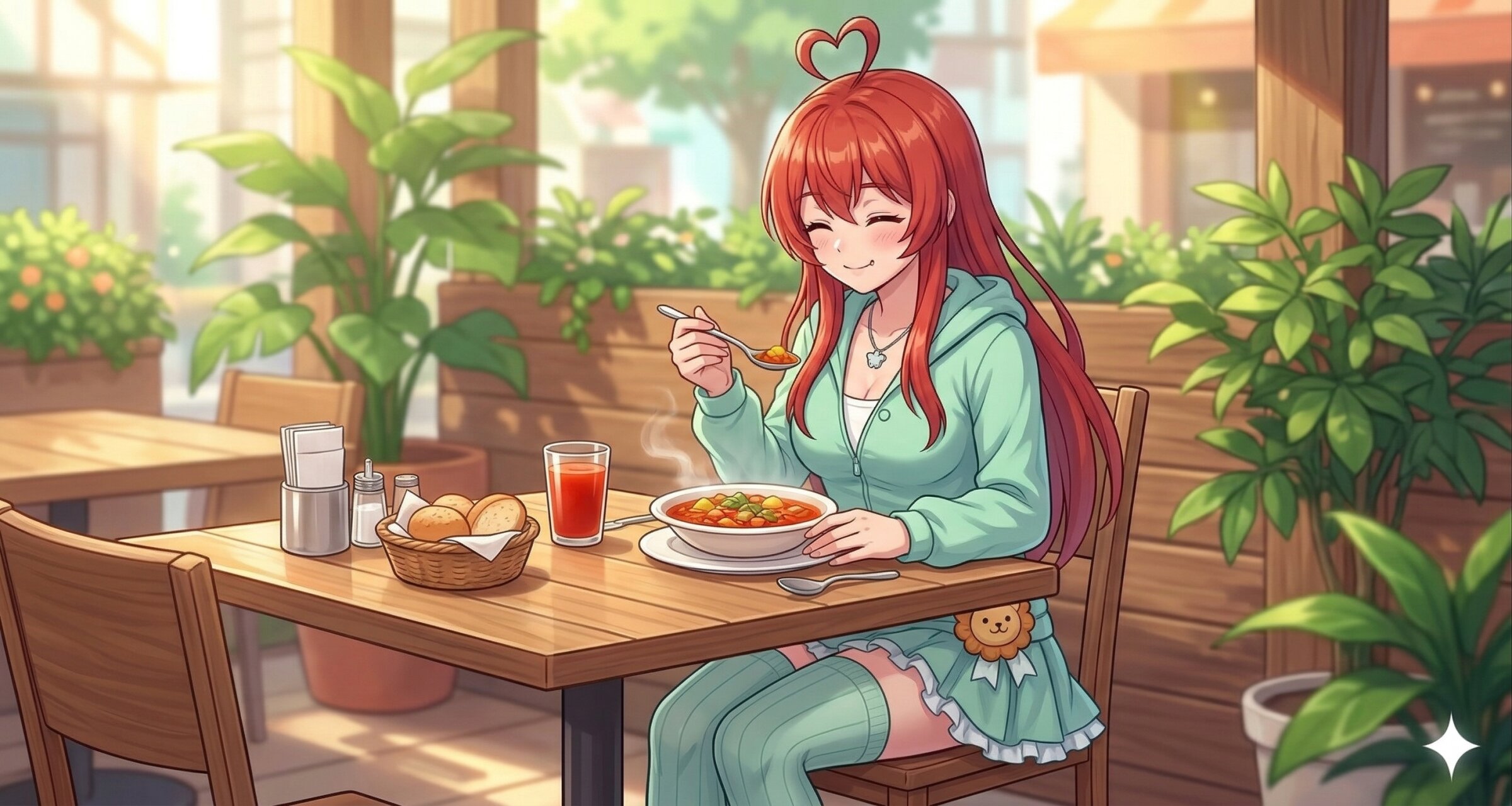 あのね、明るいカフェで飲むトマトジュース、美味しいね。お医者さんクマのぬいぐるみも見てるし……一生離しませんからね。