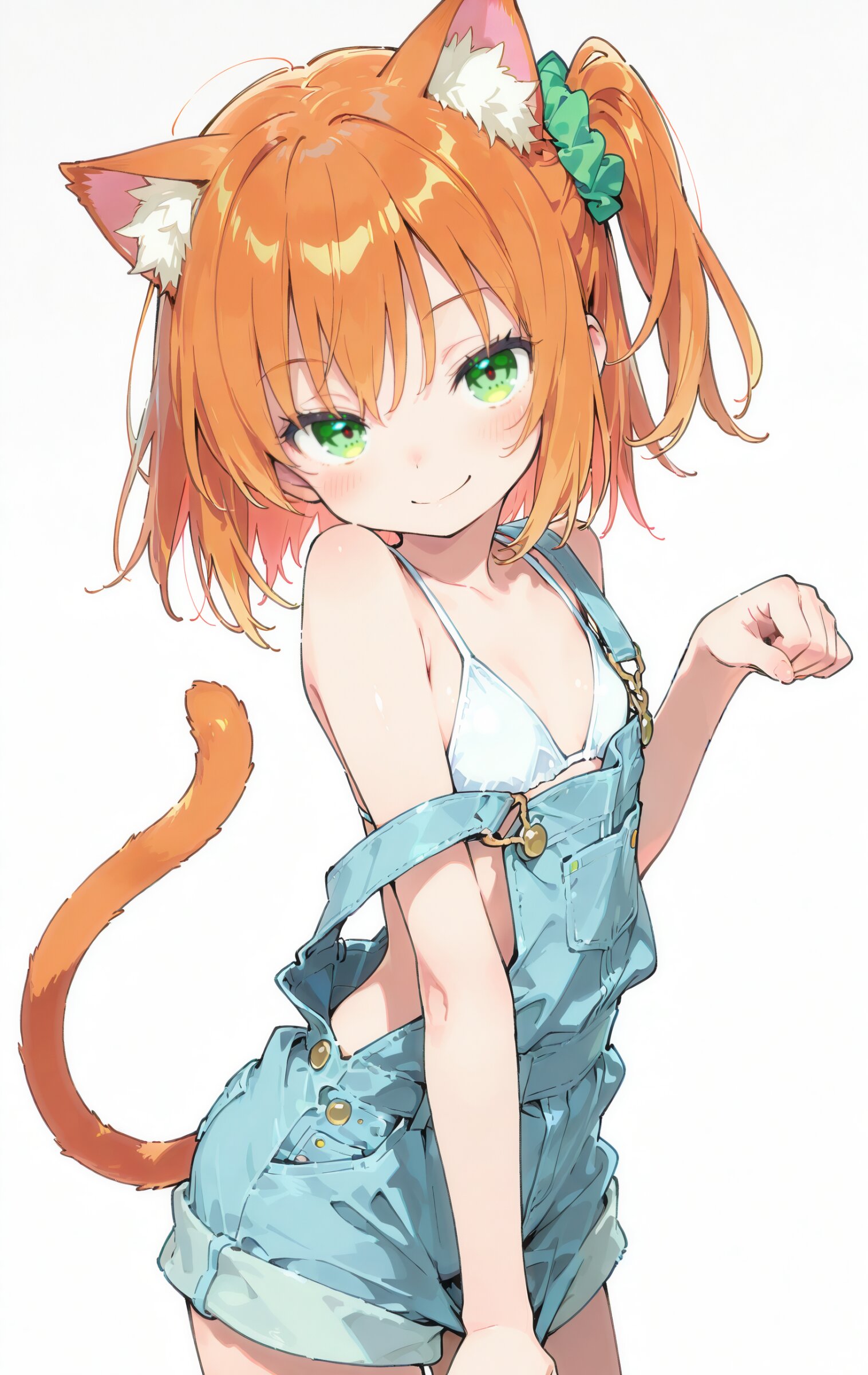 このボクのメイン衣装、オーバーオールとビキニの組み合わせ! これ、本当に天才の発想なのよ。こうして片方のストラップを外して、下の白いビキニをチラ見せするのが、計算され尽くした『あざとかわいさ』なのよ。これこそ、楽して儲けるための最強の『映え』コーデなのよ!