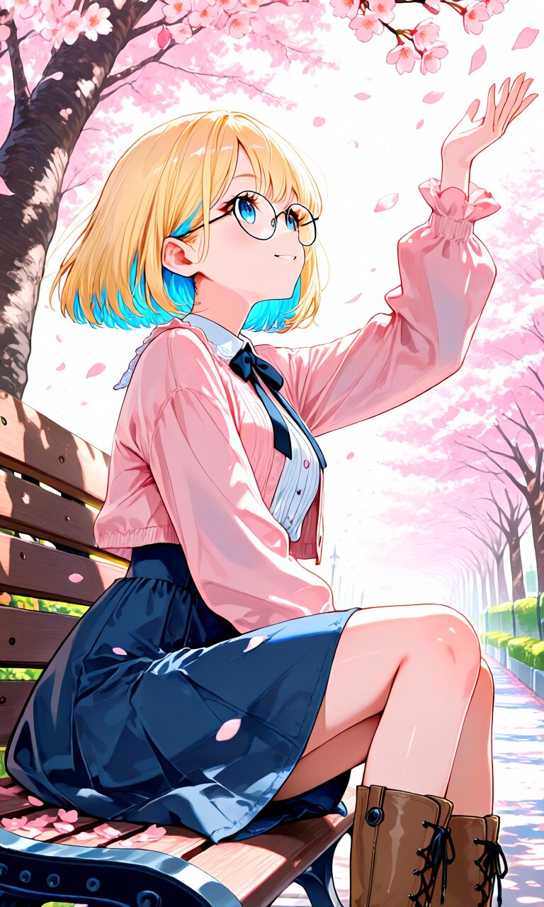 「青のインナーカラーヘアと丸メガネ👓」