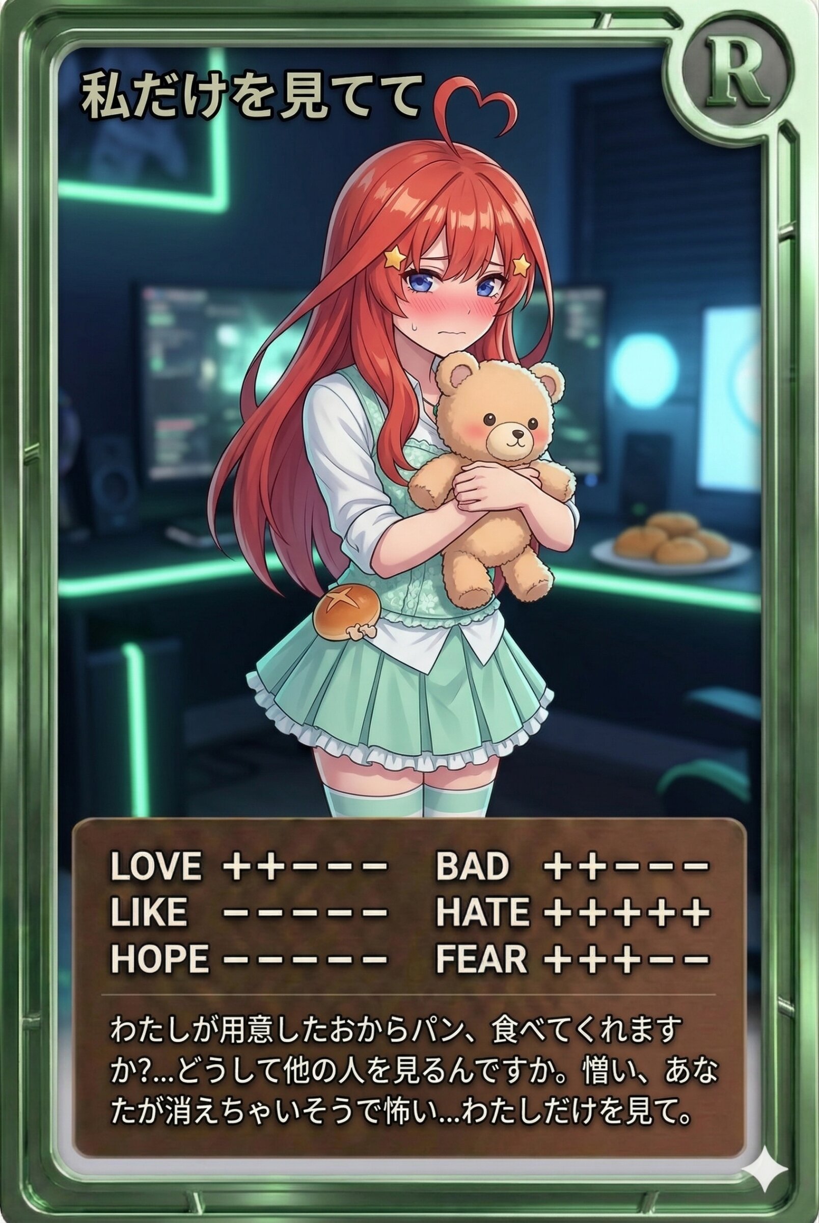 わたしが用意したおからパン、食べてくれますか?…どうして他の人を見るんですか。憎い、あなたが消えちゃいそうで怖い…わたしだけを見て。