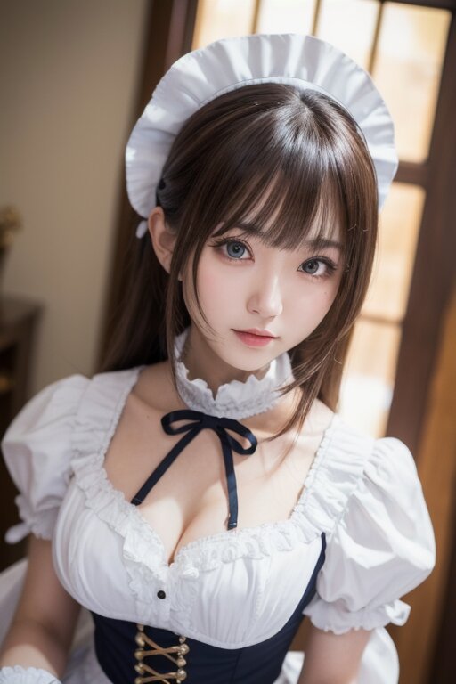 masterpiece, hyper detailed, 8K, hyper detailed photo,RAW photo, extremely detailed photo, Japanese woman, 23yo, (cute:1.1), (pretty:1.1), hyper detailed face, hyper detailed eye, beautiful eye, medium hair,(bangs:1.1), thin, tall,170cm tall, maid costume, kneehighs, hyper detailed, extremely detailed,
