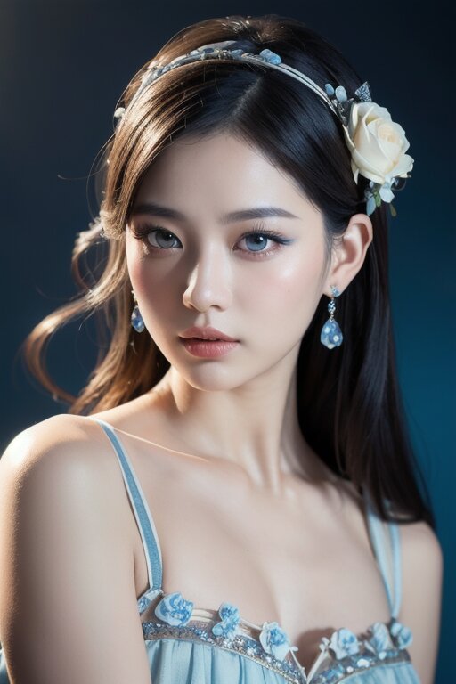Line art,splatter,minimalist elegance,beautiful blue enchantress rose fairy, Tang Dynasty royal face ancient style beauty, high-definition fashion photography,high-end,ambiguous atmosphere, a woman, painted blue flowers on her face, blue flowers, on her face, looking at viewer, in the style of anime art, luminous and dreamlike scenes, made of crystals, light white and silver, cute and dreamy, in the style of china punk,romantic scenery,animated gift, photo-realistic hyperbole,dark white and dark beige,strip painting, Bright background,detailed depiction, Delicate face and costume details, lifelike appearance HD 16K,cinematic lighting, chiaroscuro,Arbitrary view,Medium Shot, hyper realism,Hollywood style,photography,HD Details,Detail Expression,Rich Details,