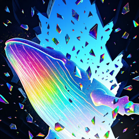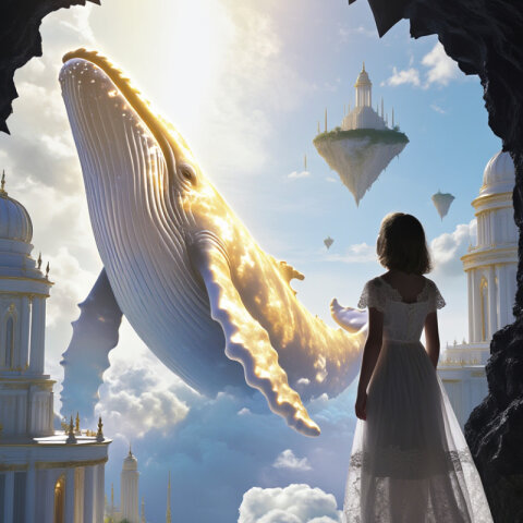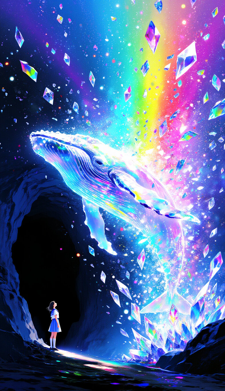 暗い道を、下を向いて歩いていたら、鯨が現れた。少し元気が出た。