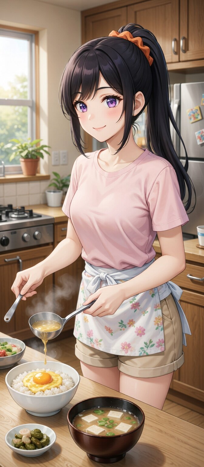 朝食の卵御飯と味噌汁 Dreamy 2026/4/9使用したAI Grok Imagine 年齢制限 全年齢 いいね6 シェア #湊 修羅観音さんの「卵御飯と味噌汁」という作品に誘発されて制作。https://iromirai.jp/posts/61278254897f湊が卵御飯と味噌汁を作っているシーン。 プロンプト 日本人女性24歳のデジタルイラスト。自宅のキッチンで朝食作り。卵御飯と味噌汁と漬物を1人分作っている。カジュアルな服装をして、エプロンをつけている。 ネガティブプロンプト Steps Scale Seed Sampler Noise Strength 1件のコメント 修羅観音 2026/04/09 08:19 卵御飯と味噌汁に漬物を添えて、奥にはサラダもあり、とても宜しゅう御座います。素敵朝食を、誠に有難う御座います。 Dreamy 2026/04/09 09:14 見てくださり、ありがとうございます。 送信 Dreamy 2025年8月より活動開始 705投稿295フォロー181フォロワー 2025年8月頃より生成AIに触るようになりました。一番利用しているのはGrok Imagine。フォトではカメラマンによる創作風出力が最近の自主テーマです。ファッション雑誌、グラビア、写真集、エッセイ、オフショットなど。イラストでは部活を自主テーマにしてます。 フォローする 他の作品 全てを見る 宝石をチーフとしたユニのチアガール フォトブック。ビールを楽しむ 日暮れ時の東京で R15・ショーでのモデル風 宝石をチーフとしたユニのチアガール 満天の星を見に行く 新しい制服 フォトブック。学生時代の通り フォトブック。振り返り笑顔 Grok Imagine 4.2比較。速度優先vs品質優先 輝くネックレス 目玉焼きの朝食 今シーズン最後の、おでんで一杯。 春のイベント限定フーズ 春のイベント限定フーズ 通勤途中で朝食をとる 都市の夜景。戸締まりをして帰ろうとしたときに 歌唱からダンスパートへ もっと見る