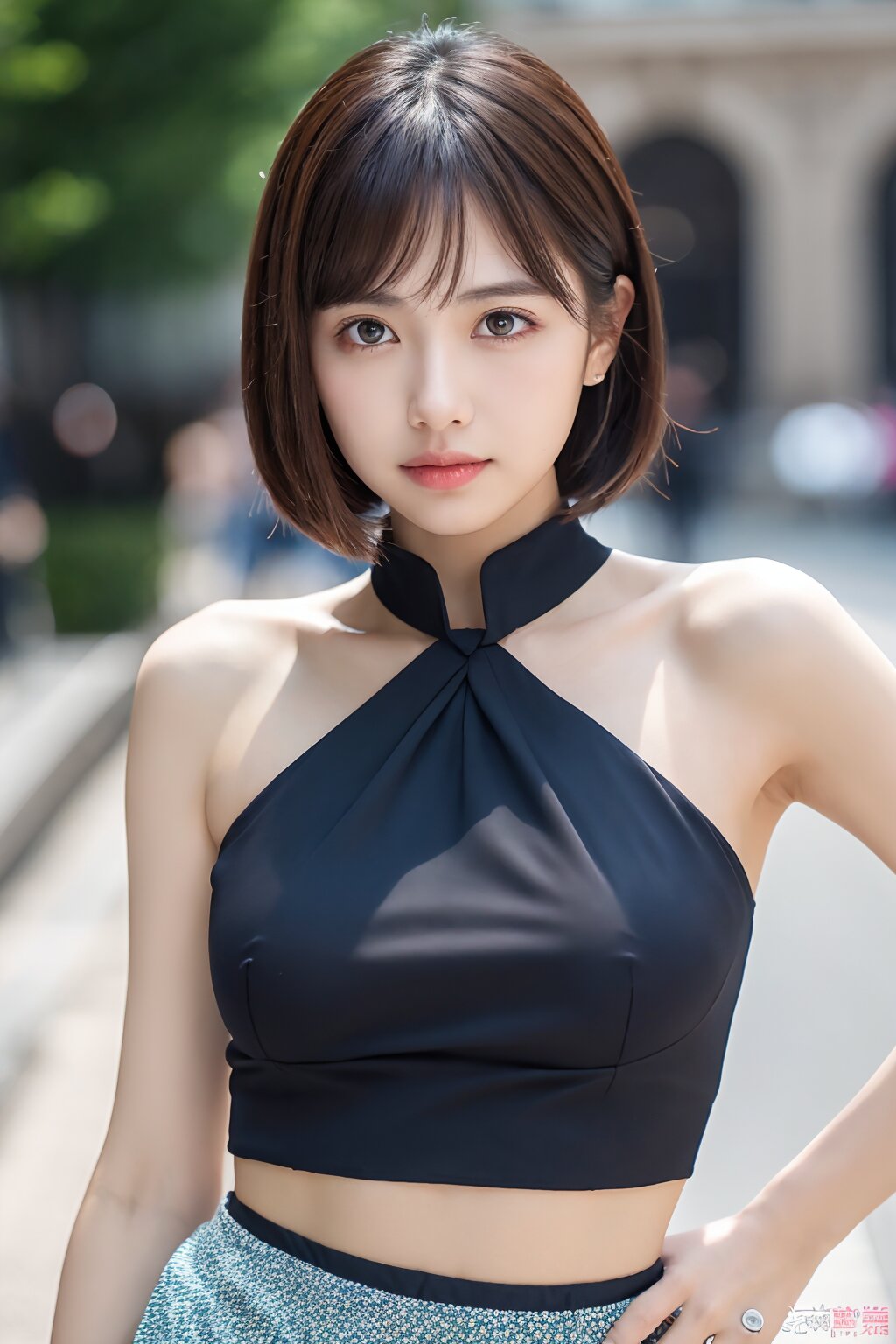 masterpiece, RAW photo, hyper detailed, 16K, extremely detailed CG, Japanese woman, 23yo, ((solo)), BREAK cute, pretty, hyper detailed eye, hyper detailed face, medium hair, bangs, extremely detailed, thin, tall, perfect anatomy, good proportion, extremely detailed body, perfect proportion, BREAK crop top,bare shoulders blouse,check short flare skirt, extremely detailed blouse and skirt, hyper detailed background,