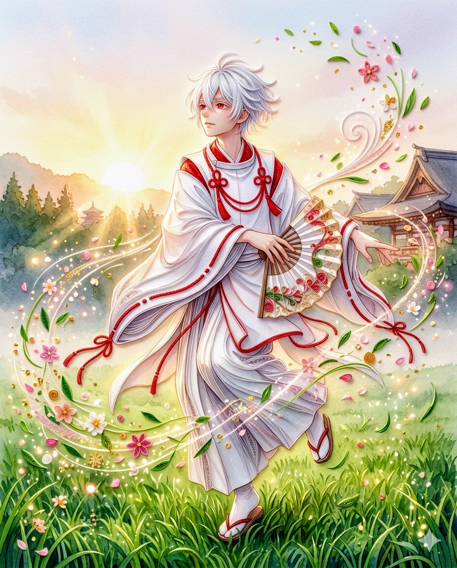 彼の手から放たれるのは、単なる舞ではない。それは、一日を元気に過ごせるようにと、人々の心に安らぎを紡ぐ、安寧の舞なのだ。