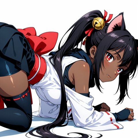<lora:MeMax6-noob-vpred:1>,memaxl6_a,memaxl6_b,memaxl6_c,memaxl6_d,memaxl6_e, masterpiece, best quality, super fine illustration, very aesthetic, absurdres, newest, hyper detailed, intricate, beautiful, aesthetic, highly decorative, HDR, Full HD, 32K, 1girl, aged down from front, portrait, solo, (teenage:1.8), shiny skin, fox ears, fox tail, mysterious, red bowtie, shiny hair, ((short hair)), ((blonde hair)), swept bangs, (parted bangs), thick eyebrows, yellow eyes, (tsurime), white miko, (armpit), japanese clothes, (black undershirt, long sleeves), yellow scarf, looking at viewer, ^^^, surprised, (raised eyebrows:1.2), looking at viewer, open mouth, (wavy mouth:1.2), fangs, (ondoors, shrine, sunset, torii), (white background:2.5), anime, anime screencap, no gradients, 2D flat design, bold outlines, yume kawaii,
