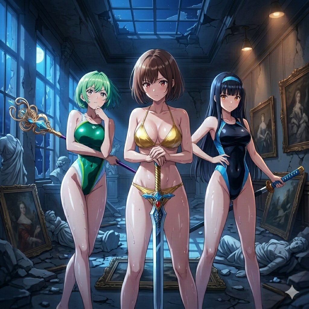 調査&魔物討伐任務にあたる水着の女戦士(ライフセイバー)の三人パーティ。