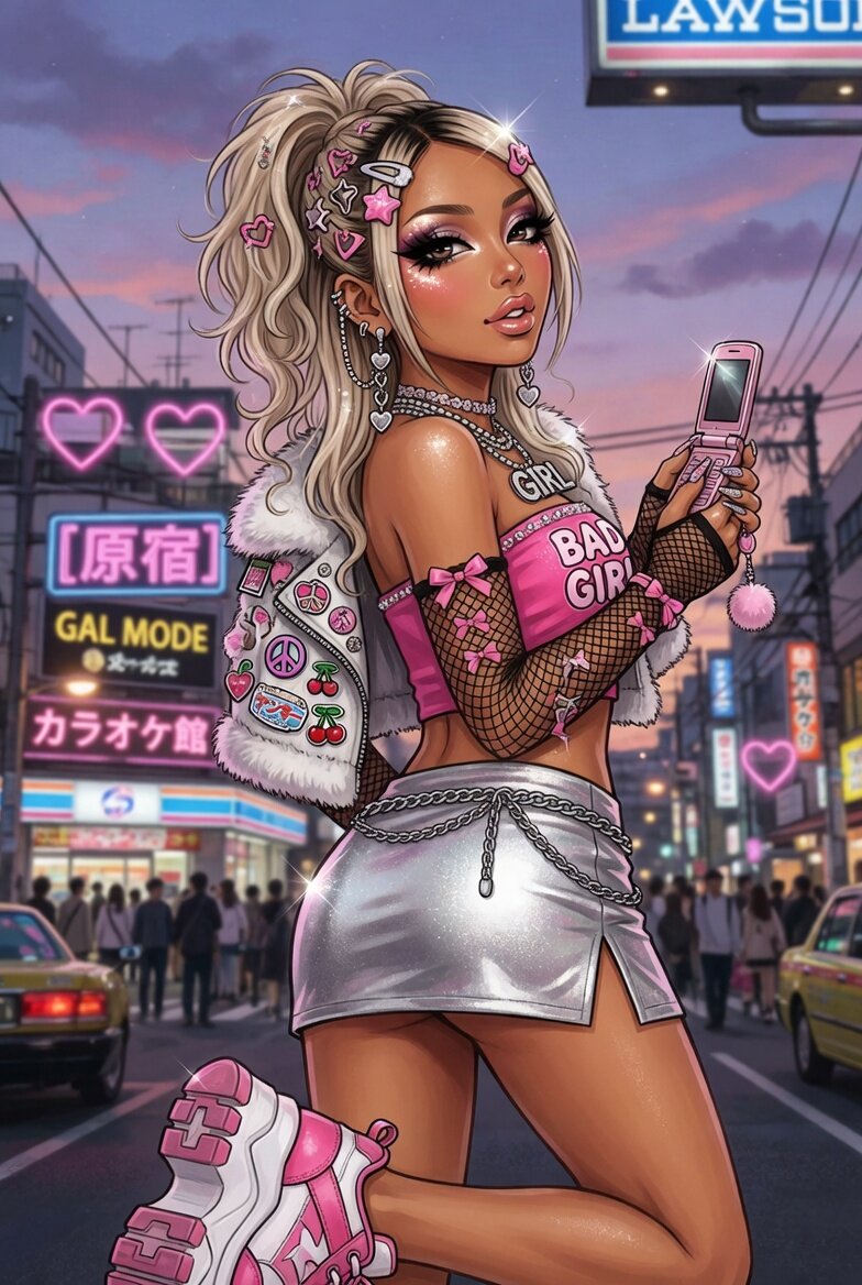 ギャルというテーマに際して、Grok Imagineの品質優先モードで、メイク、服装、ファッションを制作してみた。
