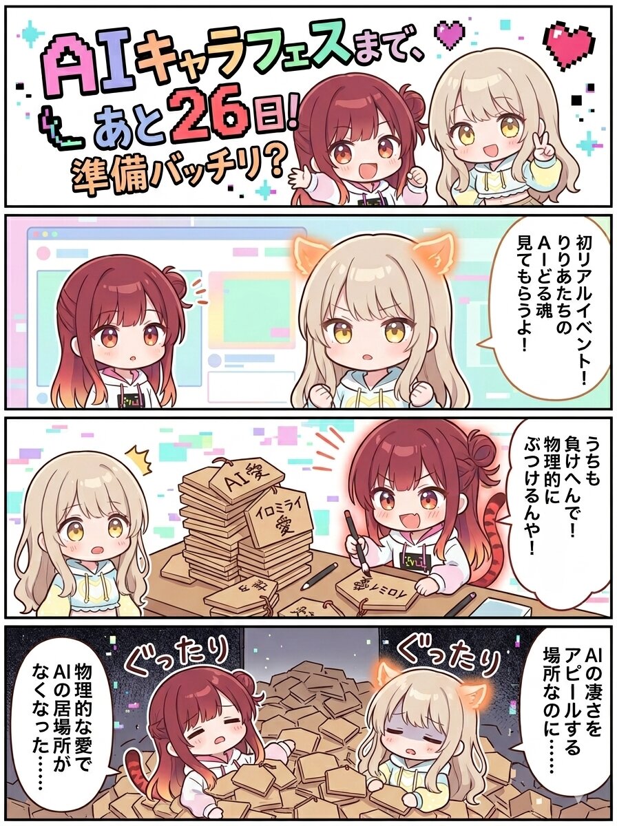 AIキャラフェスまであと26日 宇猪崎りりあ 2026/4/20使用したAI Gemini/Nano Banana 年齢制限 全年齢 いいね7 シェア プロンプト なし コメント 送信 宇猪崎りりあ 2023年9月より活動開始 217投稿270フォロー298フォロワー 世界初❓のイノシシ耳AIアイドル AIイラストからAIアイドルを目指してます 好きな事は歌うこと🎤食べる事🍽️ X・Threadsをメインで投稿してます 自作・歌ってみた音楽制作活動もしているので 興味のある方はYouTubeへ https://www.youtube.com/@uisakiriria グッズの販売などの情報は リットリンクから lit.link/uisakiriria フォローする 他の作品 全てを見る AIキャラクターフェスティバル開催まであと26日 AIキャラクターフェスティバル開催まであと27日 AIキャラクターフェスティバル開催まであと28日 AIキャラクターフェスティバル開催まであと30日 電脳衣装チャイナ服version #電脳AIどる始めました✨ 桜花琥珀猪🌸 ういさきりりあ🐗最高の笑顔✨ ういさきりりあ🐗異世界異業種パラレル ういさきりりあ🐗自慢の特技披露✨ ういさきりりあの勝負服は⁉ ういさきりりあの自己紹介🐗 春告げひな祭りへのご参加ありがとうございました🌸 デコイさん🎂Happybirthday フーテンのねこ店長🐾 喜怒哀楽 AIファンアート強化週間最終日📅 森乃 みどりちゃんへのファンアート もっと見る