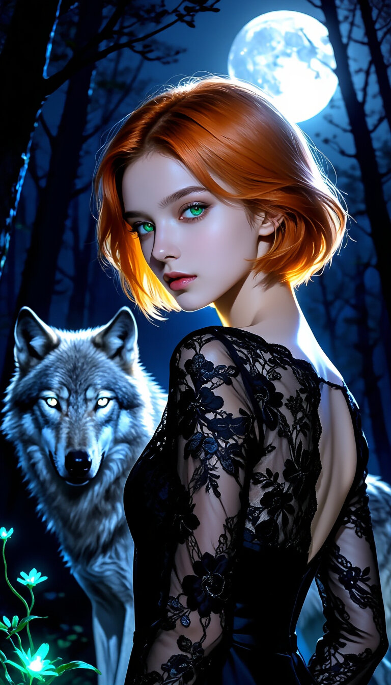 狼ちゃんの毛並みとフレアさんの髪が月明かりに照らされて、それぞれの魅力を引き立てていてとっても綺麗です✨