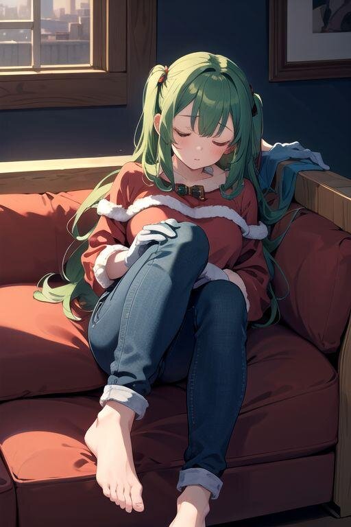 ソファで居眠りしているリツハちゃん Amami 2026/4/24使用したAI その他 年齢制限 全年齢 いいね5 シェア #リツハ #AI春のGWまつり #リラックス #裸足 #サンタコス #緑髪 #ジーンズ イロミライさんの企画に参加今回のお題はGun2aさんによるリラックス(1枚目)ソファで寛いでいたが、そのまま居眠りしてしまったリツハちゃん プロンプト なし コメント 送信 Amami 2023年12月より活動開始 625投稿57フォロー66フォロワー Amamiです。(Xやpixivの「AI Amami」) Spellaiを用いて、ノエルちゃん、リツハちゃんといったサンタ娘や素足の少女をメインに投稿してます! Xやpixivより投稿頻度は少なめですが、彼女たちの世界を発信できるようにしたいです。 よろしくお願いします。 フォローする 他の作品 全てを見る 素足のチアリーダー 猫耳娘 ソファで寛ぐノエルちゃん バイクで峠を攻める素足銀髪シマウマ耳少女 花束を持った素足の猫耳娘 始祖サンタ娘と苺のケーキ 始祖サンタ娘と苺のケーキ 素足にジーンズの黒髪猫耳娘 素足にジーンズの緑髪海賊少女 リツハちゃん 素足のチアリーダー 始祖サンタ娘 桜の森にて素足にジーンズの緑髪少女 素足の緑髪制服少女 始祖サンタ娘とケーキ 月曜日に立ち向かう森の素足緑髪制服少女 始祖サンタ娘と苺のケーキ 素足のチアリーダー 緑髪女子高生 桜の森にて素足にジーンズの緑髪少女 桜の森にて素足にジーンズの緑髪少女 もっと見る
