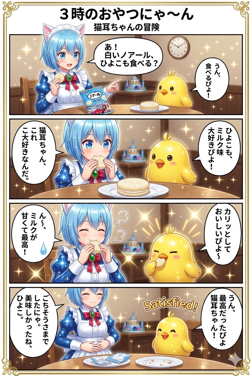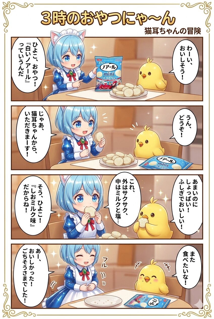 3時のおやつにゃ〜ん 動くイラスト 2026/4/27使用したAI Gemini/Nano Banana 年齢制限 全年齢 いいね2 シェア #猫耳ちゃん #ひよこ #猫耳 #メイド服 #3時のおやつにゃ〜ん #漫画 #白いノアール #ドラえもん プロンプト なし コメント 送信 動くイラスト 2024年6月より活動開始 352投稿12フォロー30フォロワー 2024年 06月28日(金)初投稿 10月13日(日)動くイラスト投稿 モーションブラシを使用してのアニメショーン フォローする 他の作品 全てを見る サンリオピューロランド クリスチャン・ラッセン展示会 ハヤテのごとく 綾崎ハヤテ 猫耳ちゃんとひよこ 初音ミクの展示会 猫耳ちゃんとひよこ ガンプラ展示会 猫耳ちゃんとひよこ 映画館 猫耳ちゃんとひよこ 公園 猫耳ちゃんとひよこ イオンモール 猫耳ちゃんとひよこ 外国? アニメ展示会 ニンテンドーミュージアム エビフライの抱き枕 北極キツネ 猫耳ちゃんとひよこ 巨大プリンでジャンプする 巨大たい焼きに乗る猫耳ちゃんとひよこ 猫耳ちゃんとひよこ 夏祭り かき氷 猫耳ちゃんとひよこ TOKYOふしぎ祭エンス 猫耳ちゃんとひよこ トランポリン もっと見る