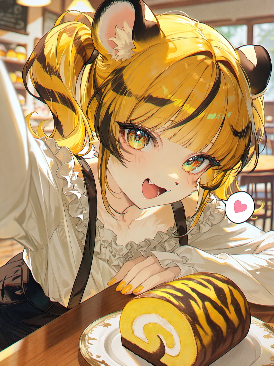 ロールケーキ(虎) 琥猫 2026/4/28使用したAI Stable Diffusion XL 年齢制限 全年齢 いいね8 シェア #森川のあ #AI春のGWまつり #フードコート #火曜のAIフードコート 虎ロールケーキ(虎皮ケーキ)はトラから取ったものではありませんよ プロンプト なし 1件のコメント 天汐香弓 2026/04/28 03:02 フードコート参加ありがとうございます。虎柄のコーヒーかな?チョコかな?その部分が美味しいんだよね!おメメキラキラでワクワクが伝わります! 琥猫 2026/04/28 14:26 コーヒー味ですよ!このスイーツを気に入っていただけてありがとうございます! 送信 琥猫 2023年6月より活動開始 276投稿75フォロー82フォロワー 琥猫(こねこ/koneko)、かっこよさと、時折の少女らしさと、ケモミミ🐱🐰🦊🐺が中心、よろしくお願いします🤝 --- '26 2/2-2/6夜 JR秋葉原駅 昭和通り口CM '25 10/27-11/2夜、6/9-13昼 昭和通り口CM '24【禁断のカーテン】素敵作品入選 フォローする 他の作品 全てを見る 昭和ノのあ 昭和風魔法少女 家庭科の先生 アイドルコス? 宿泊 リス🐿️ のあxとら 猫 魔法少女衣装 のあの勝負服 特技:片手逆立ち のあちゃんxバーサーカー のあの服装・細部まで詳細に分解 のあちゃんxアイドル 和洋ミックスの勝負服 のあの笑顔 お花見 お花見 もっと見る
