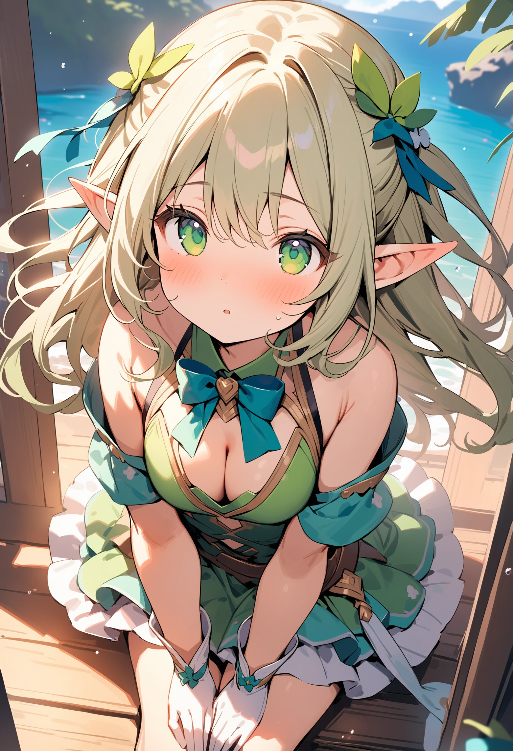 ((masterpiece)), ((best quality)), ((kawaii)), cute, (lovely), ((extremely detailed)), (beautiful), dynamic angle, a cute girl, 1girl, solo, ((elf)),beautiful blond hair, beautiful green eyes, ((beautiful eyes)), long hair, fantasy clothes,