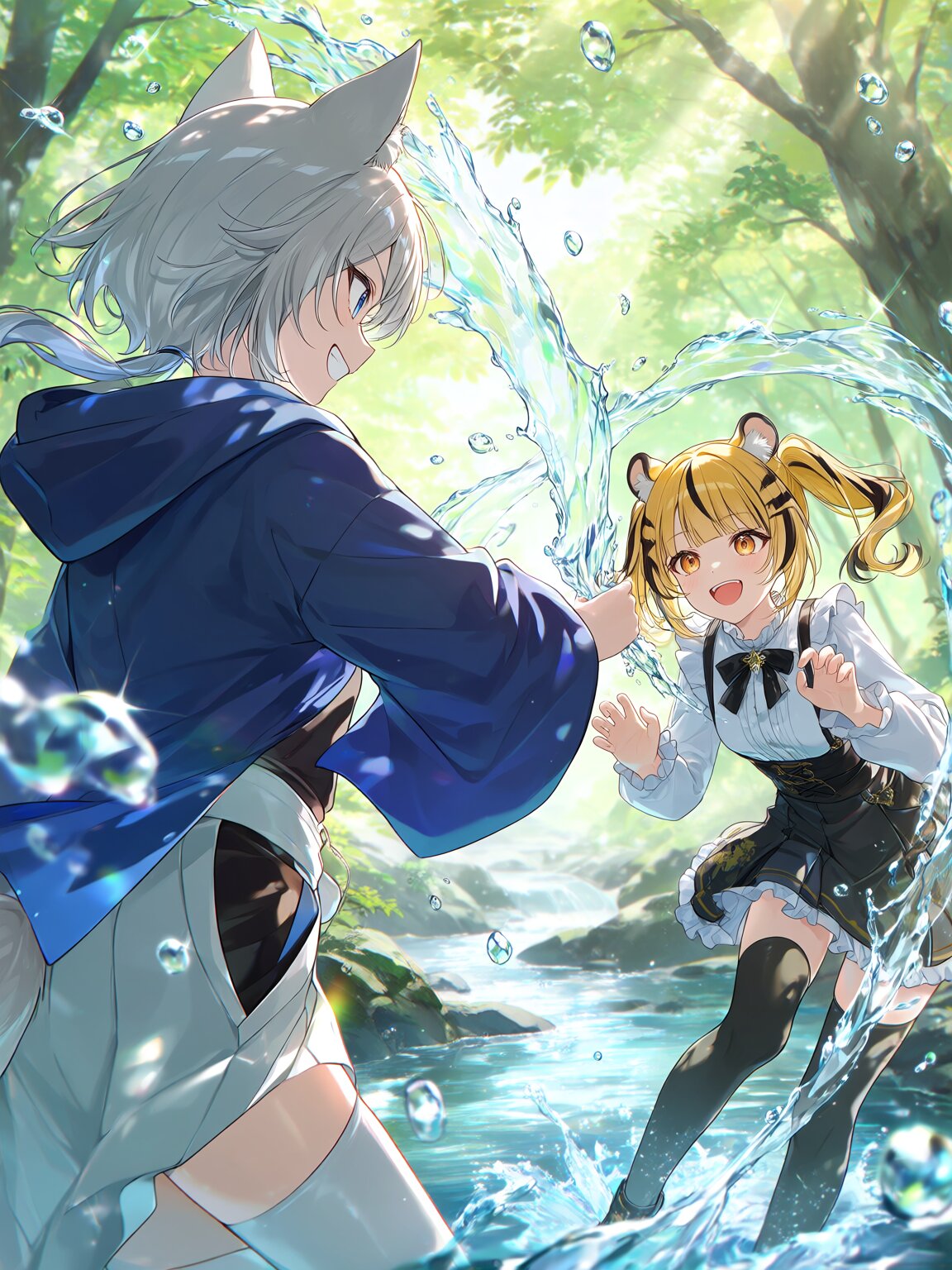 一緒に水遊び 琥猫 2026/4/30使用したAI Stable Diffusion XL 年齢制限 全年齢 いいね8 シェア #ベシス #AI春のGWまつり #水遊び 2025年は一人で水遊びしていたけど、2026年はのあちゃんと一緒に遊べるから、先輩として頼れるところを見せる時だね! プロンプト なし 1件のコメント お玉じゃっく氏 2026/04/30 08:53 楽し気な水の掛け合いかわいいー💕二人の表情がとても楽しそうで癒されますね🥰 琥猫 2026/04/30 13:56 ありがとうございます!楽しそうな雰囲気が伝わって良かったです😍 送信 琥猫 2023年6月より活動開始 278投稿75フォロー82フォロワー 琥猫(こねこ/koneko)、かっこよさと、時折の少女らしさと、ケモミミ🐱🐰🦊🐺が中心、よろしくお願いします🤝 --- '26 2/2-2/6夜 JR秋葉原駅 昭和通り口CM '25 10/27-11/2夜、6/9-13昼 昭和通り口CM '24【禁断のカーテン】素敵作品入選 フォローする 他の作品 全てを見る 一緒に水遊び(その後) 昭和ノのあ 昭和風魔法少女 ロールケーキ(虎) 家庭科の先生 アイドルコス? 宿泊 リス🐿️ のあxとら 猫 魔法少女衣装 のあの勝負服 特技:片手逆立ち のあちゃんxバーサーカー のあの服装・細部まで詳細に分解 のあちゃんxアイドル 和洋ミックスの勝負服 のあの笑顔 もっと見る