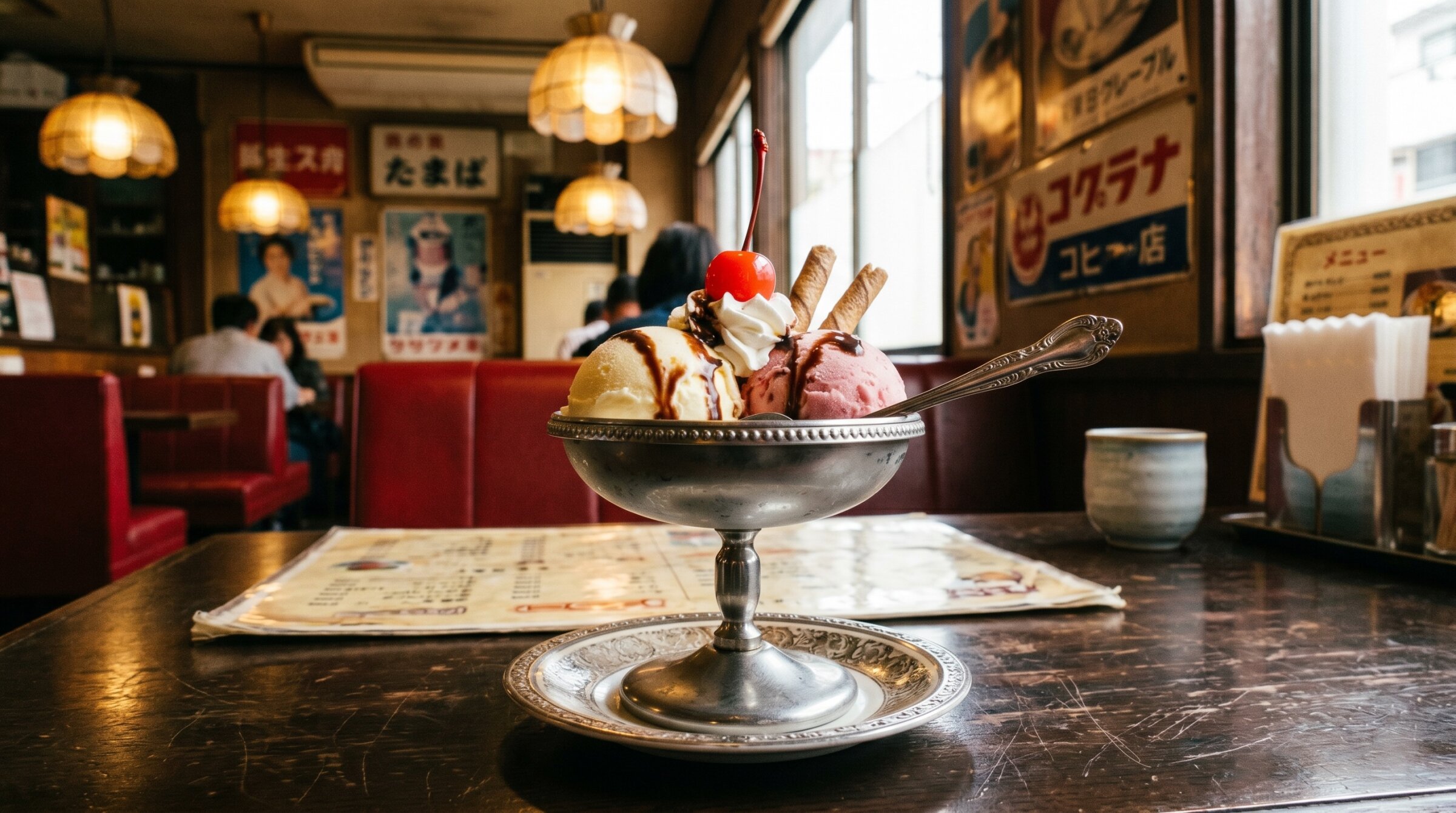 昭和レトロ風喫茶店 かざま@🍎 2026/4/28使用したAI Gemini/Nano Banana 年齢制限 全年齢 いいね0 シェア #昭和レトロ #火曜のAIフードコート #フードコート #アイスクリーム プロンプト なし コメント 送信 かざま@🍎 2022年12月より活動開始 40投稿10フォロー13フォロワー 絶え間なく注ぐ味の素 栄養と呼ぶことができたなら お蕎麦ではどうしても付け汁にできなかった うまあじの磯の汁 フォローする 他の作品 全てを見る アイスコーヒーがビーカーで提供されるカフェ うに軍艦 4月15日はいちご大福の日 寿司弁当 4月6日は春巻きの日、コンビーフの日 毎月24日は削り節の日 毎月24日は削り節の日 ぼたもち 3月13日はサンドイッチデー 3月13日はサンドイッチデー 3月10日はミートソースの日、ミントの日 3月8日はみやげの日 ひなあられと桜餅 2月28日はビスケットの日 かに爪フライを食べるちいかわたち 2月10日は豚丼の日、フードの日、ニットの日 2月10日は豚丼の日 2月2日はホットプレートごはんの日、カップルの日 もっと見る