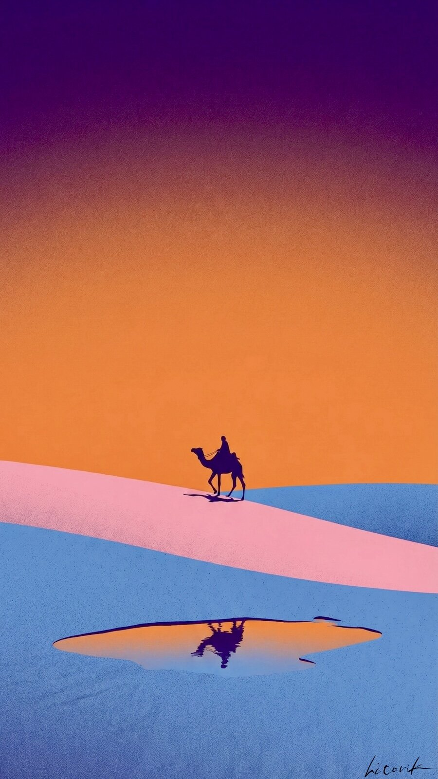 砂丘を進むラクダと旅人/スマホ壁紙アーカイブ