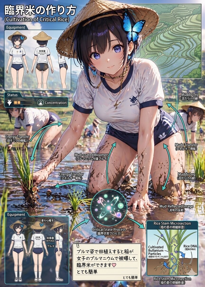 泥と水で遊ぶ!ブルマ田植え らび@AIイラスト咲蓮清鹿クン🦋 2026/4/30使用したAI GPT-4o 年齢制限 全年齢 いいね7 シェア #水遊び #AI春のGWまつり という事でブルマ田植えです。キャキャウフフと戯れ…またブルマニウムでブル米もよく育てます…ブルマニウムの臨界ブルマ…ブルマしか勝たん… プロンプト なし 1件のコメント お玉じゃっく氏 2026/04/30 09:07 泥んこ田植え🤣こちらは詳細な説明イラストもあるのですねー🤣ブルマにそんな性質が!!! 送信 らび@AIイラスト咲蓮清鹿クン🦋 2023年6月より活動開始 176投稿105フォロー76フォロワー 可逆性TS美少女が好きな『らび』と申します。その中でもTS淫魔化やサキュ堕ちなど混沌なるものが好きです。 🏭生成環境 📱スマホアプリ:TensorArt (Illustrious始めました) ↓主にTensorArtにてイラスト生成してますので宜しく🦋 https://tensor.art/u/712899098927391369 🦋登場キャラ→個別ページにて…📄 フォローする 他の作品 全てを見る サキュ堕ち巫女の清鹿クン フードコートで暴走カート! 女装し過ぎで本物の女体化した清鹿クン! 変身!コンたぬ!コスプレ清鹿クン! 女の子に変身!TS清鹿クン リラックス女装をつけてジャンプ飛躍 ゴールデンウィークにはゴールデンレトリバー🐕 人間であり淫魔でもあるお得なハーフサキュバス 土曜日はメイド曜日&淫魔化体質だど愛しお! 金曜日のチアガール 愛の魔法とサキュ料理 🍋ブルマ文旦(その2) 🍋文旦ブルマーあたっく! 火曜日のフードコート! 🍓たくさん! ブルマニウムの臨界ブルマ! 13日の淫魔化バレンタイン! 熊った激辛ラーメン🍜 もっと見る