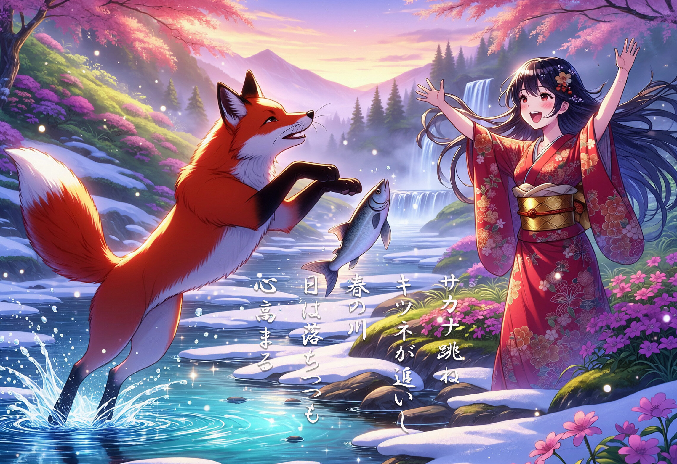 キツネとサカナの輪舞 石上夢悟朗 2026/4/30使用したAI その他 年齢制限 全年齢 いいね3 シェア #短歌 #動物 #美少女 サカナ跳ねキツネが追いし春の川日は落ちつつも心高まる雪も少なくなった春の日。キツネの魚捕りを、少女が笑顔で応援しています。日は沈むまで、もう間もなく。だけど心は高揚しているでしょう。※このイラストは『Adobe Firefly 公式モデル』を使用して生成しました。 プロンプト なし コメント 送信 石上夢悟朗 2026年3月より活動開始 11投稿2フォロー3フォロワー 短歌+AIイラストが好きです。作品をファミマプリントクリエイターズで販売中。 https://creators-fp.family.co.jp/1U9G また、ネットショップ『幻象店~AI画像グッズ販売所』も運営しています。 自作小説『現代版七つの大罪ファンタジー』や幻想と生物をテーマにした制作物です。 よければxのプロフィールリンクから遊びに来てください。 フォローする 他の作品 全てを見る お座りオオカミ カルガモとの語らい 空飛ぶゾウと少女の願い 平和を祈る演奏 鹿と心 海イノシシと水の精霊 駆ける馬 雲の上で食べる綿飴 蒼穹列車が見た天使 魔法学園の放課後
