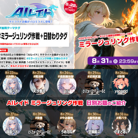 #AIレイド(170件) AIイラストAIフォト すべて呪文あり 全年齢R-18 【開催予告】AIレイド ミラージュリング作戦 8/22~8/31 イロミライの中の人 AIレイド ご参加ありがとうございました! 御厨りお AIレイドコラボ企画+ハロウィン🎃ご参加ありがとうございました! イロミライの中の人 『深夜の魔法バーで乾杯を』 ゆう 酔ってないよ~ -ミイラ娘- 愛gg ~異世界カフェ~ ハロウィン期間限定!メガサイズスイートパンプキンフラペチーノ 廃寺 棄也 【AIレイド最終日】お疲れ様でした。 シンム(旧名シン) happy halloween🎃 イムラ(imura) ハッピーハロウィン♪ 写楽 a.k.a. @BankC ハロウィンにかんぱい masa Happy🎉Halloween🎃 あかり-acali-(ふじみの趣味垢) ハロウィンAIレイド4 ぷるくらちゃん Happy halloween! 坂本の日常(AIイラストレーター)目指せフォロワー1000人! ハッピーハロウィン!これからもよろしくね! 坂本の日常(AIイラストレーター)目指せフォロワー1000人! かぼちゃドリンク はじめ ふわわぁ💕このメロンジュースとっても美味しいですぅ💦ジャックさんにもあげなきゃですぅ✨ やまとあい ハロウィンウィッチのエルフさんズ うめたな AIレイド、おばけのクリームソーダ 天汐香弓 ブラッドジュースをどうぞ 天汐香弓 AIレイド おばけちゃんとゴスロリちゃん 天汐香弓 10/30分 ここまで【管理用】 御厨りお AIレイド でいりー 魔女の晩餐室~禁断の一杯がもたらす魔法の時間~ ゆう 先に楽しんでるよ あかり-acali-(ふじみの趣味垢) ハロウィンAIレイド3 ぷるくらちゃん 🎃 有須川紫翠 吸血鬼と狼女とフランケンシュタイン 空撰綴斗 これメロンジュースだよ💦 やまとあい アップルジュースはいかが 林檎/魔女萌え 謎飲料とハロウィンウィッチのエルフさんズ うめたな もっと見る もっと見る 表示対象をR18に切替 -PR- WEBベースで軽快に動作するイロミライオリジナルのモザイクエディターが登場しました。PC、Android、iPhoneから手軽にモザイク編集。プロンプト情報を保持したままローカルデバイスにPNGで再保存が可能です。 -PR- モザイクエディター powered by イロミライ ようこそ!ゲストさん 会員登録 ログイン 新着クリエイター ジーク ぽるえち よっしー もっと見る 新着キャラクター フィリス・シルヴァン(Phyllis Sylvan) Aserina Arcianne Aethelle Asercia Raura・Freyja もっと見る 誕生日の近いキャラクター 田沢理子12月9日 月陰緋桜12月12日 華兎12月12日 もっと見る